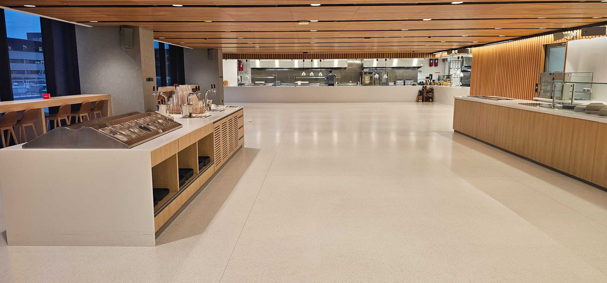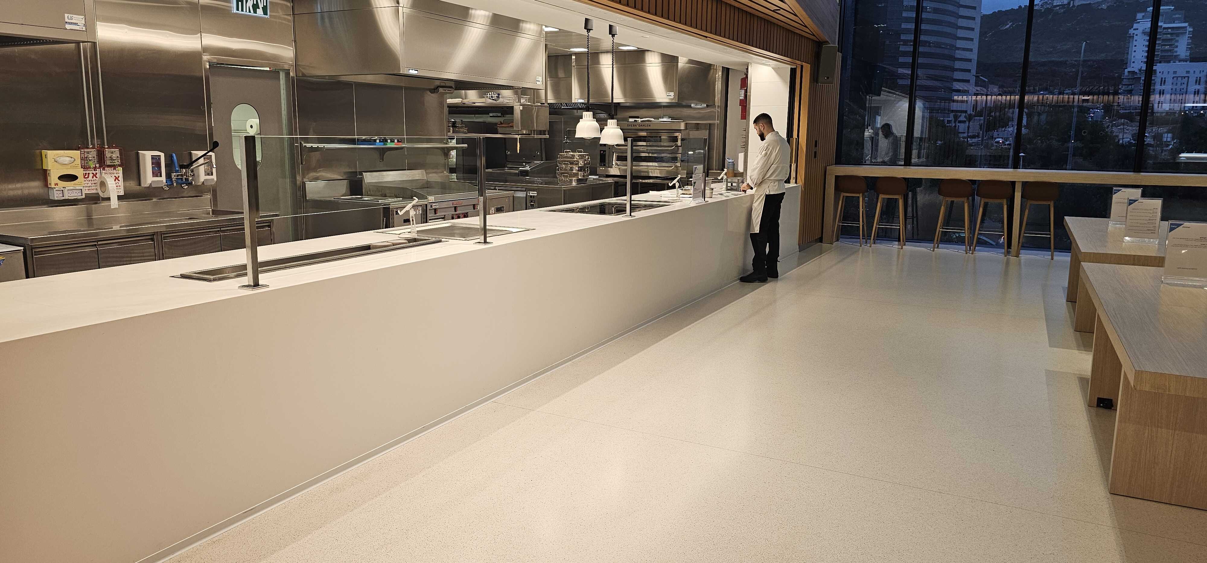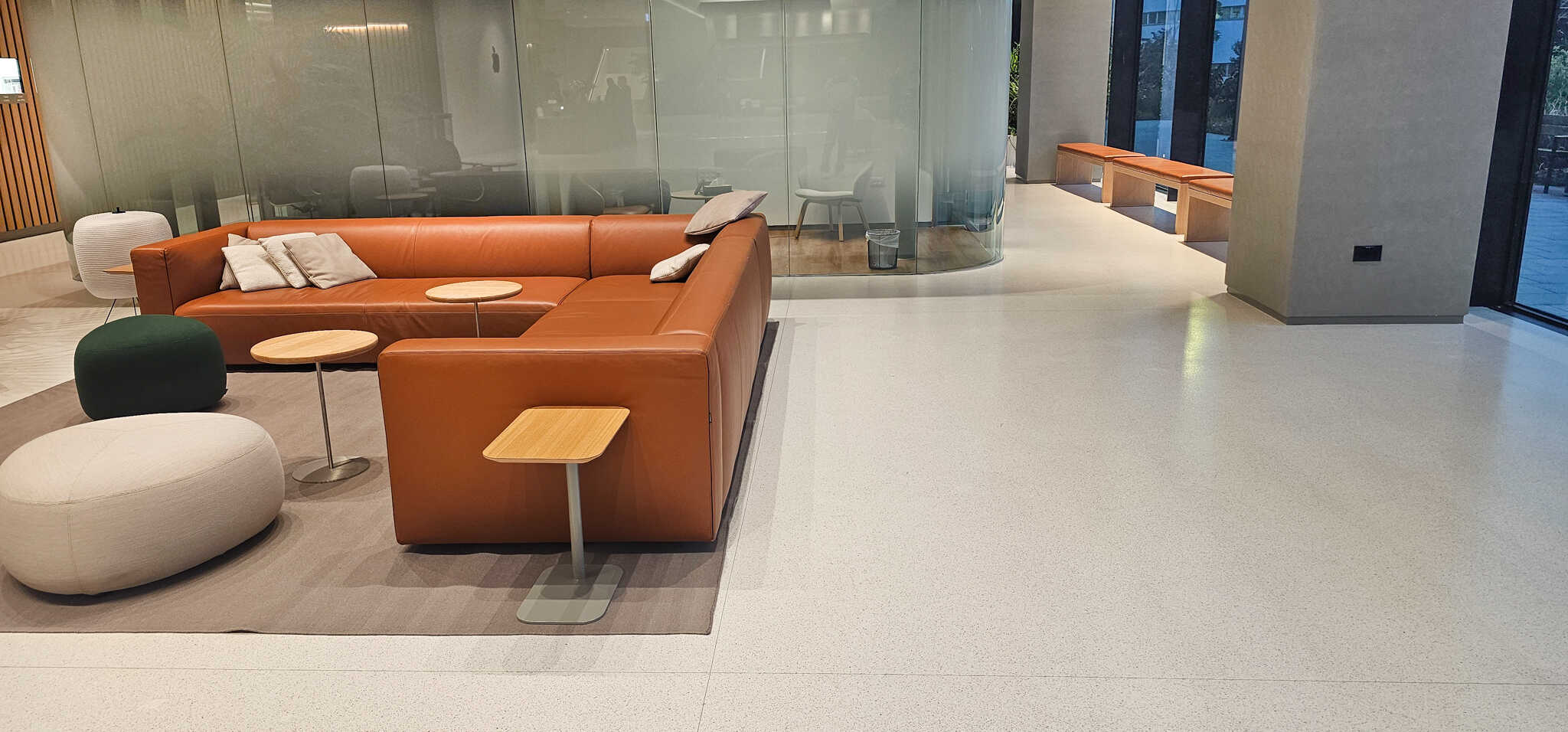 רצפת טרצו אפוקסי יוקרתית מאוד ,בעלת מראה נקי ואלגנטי, ללא תפרים, המיועדת לפנים המבנה.
